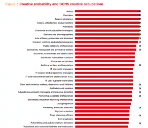 The report goes on to explain that a higher share of creative employment in the United Kingdom largely stems from its higher proportion of jobs in the Education, Legal, Community Service, Arts and Media category, which constitutes 11.2 percent of the total UK workforce relative to 9.6 percent in the United States. So in future there may be (or need to be) more jobs in that category for people to stay in employment.