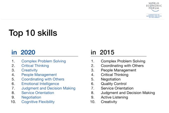 The challenge here of course is that every year that passes a new skill needs to be added, and others removed or at least reconsidered. Futurist and researcher Stowe Boyd was right to suggest that a year later that the list has already become outdated. For instance, where is Design Thinking? This is something that will be essential especially in the worlds of engineering with AI when we are thinking not only of what tech will do, but how we can design and deploy AI to work alongside humans rather than render humans entirely useless.
